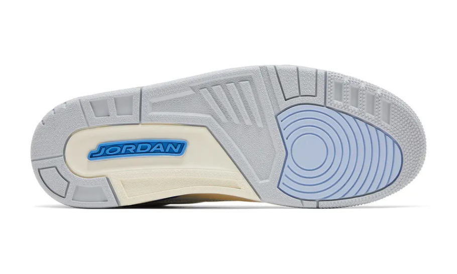 The Air Jordan 3 Retro 'Lucky Shorts' takes inspiration from the UNC shorts that Michael Jordan wore underneath his Chicago Bulls uniform during games. The legacy silhouette dons a white tumbled leather upper with grey suede overlays at the forefoot and heel. Powder blue eyelets are matched by Jumpman branding hits at the tongue and heel tab. An additional splash of blue wraps around the heel of the off-white polyurethane midsole, fitted with visible Air-sole cushioning and reinforced by a grey rubber outsole.